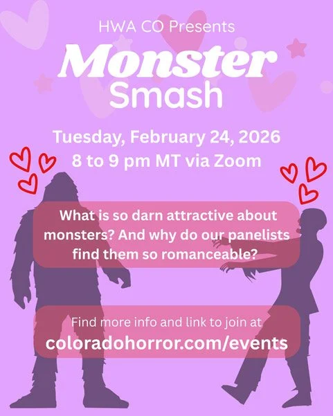 Join HWA Colorado for Monster Smash as they discuss what is so darn attractive about monsters. Why would BigFoot and Mothman start gracing the covers of romance covers? And which monsters and why do our panelists find romanceable?